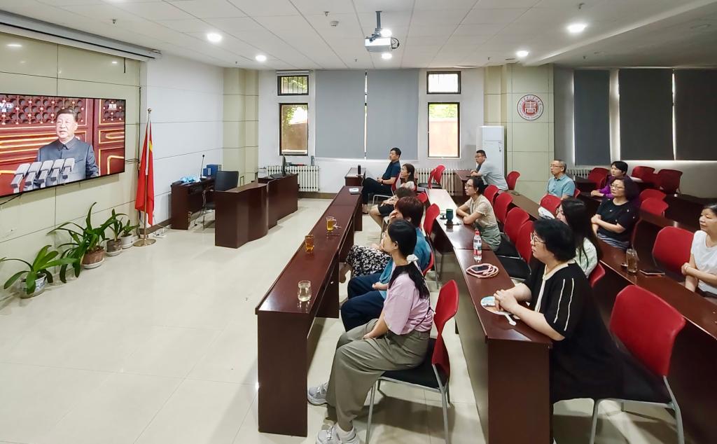 9月3日上午9点,图书馆党总支组织全体在馆馆员集中观看纪念中国人民抗日战争暨世界反法西斯战争胜利80周年阅兵式直播。