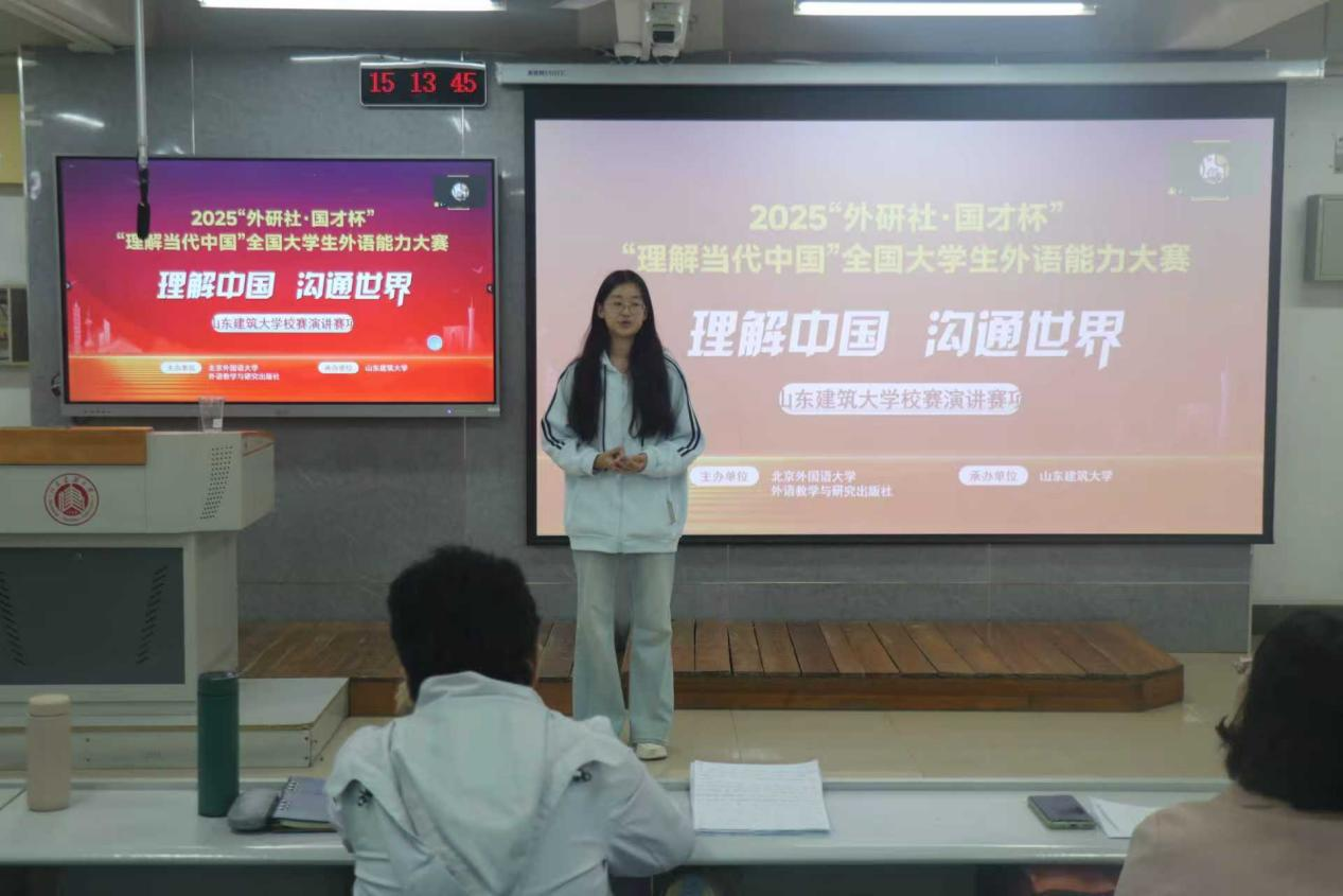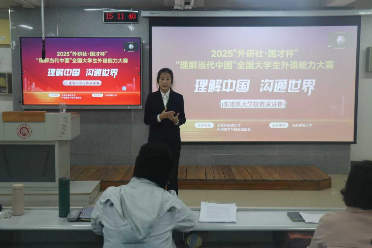 10月9日,2025“外研社·国才杯”“理解当代中国”全国大学生外语能力大赛校园赛复赛在外文211教室顺利举行。比赛由陈磊、初小宁、丁玫、华志全、沈少剑、于胜男五位专任教师担任评委,马嘉涵、罗雨菲同学主持。