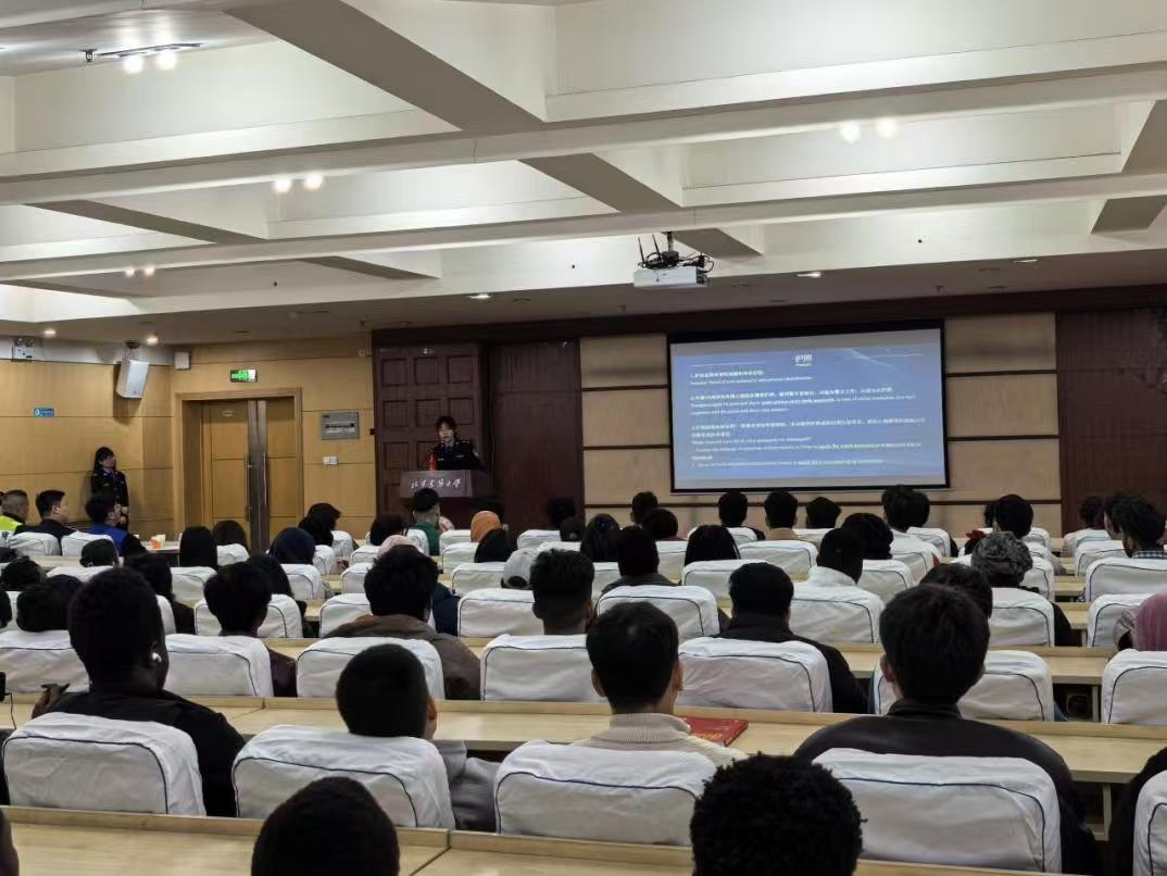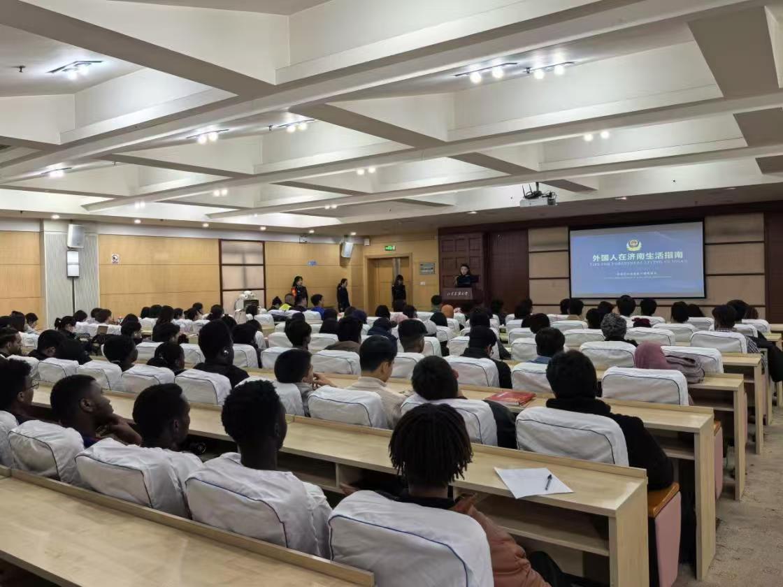 11月3日,山东建筑大学外国语学院(国际教育学院)联合济南市公安局宣讲团,在200人报告厅成功举办“外籍师生普法专题讲座”。此次活动旨在通过系统化的法律解读与案例剖析,帮助我校外籍师生深入理解中国法律法规,增强知法守法意识,助力其更好地融入济南市社会学习与生活。