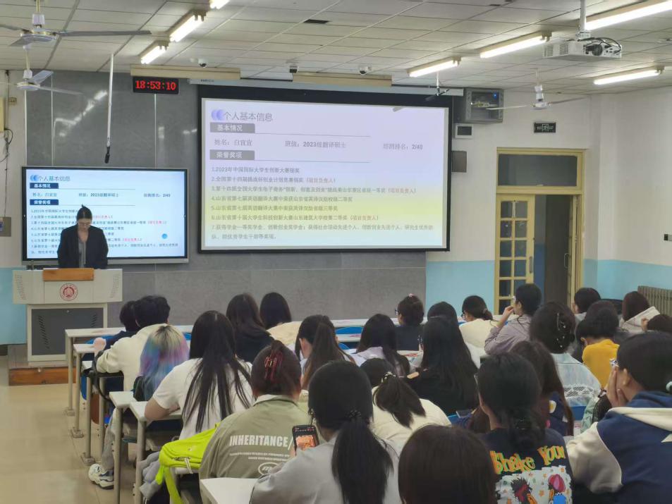 为汲取备考经验,提升参赛实力,进一步推动学院“双创”教育的发展,9月23日,学院在博文楼201举办“双创教育”指导讲座。此次讲座由学院研究生、“双创”朋辈导师白宣宣主讲,学院2024级110余名同学参加活动。