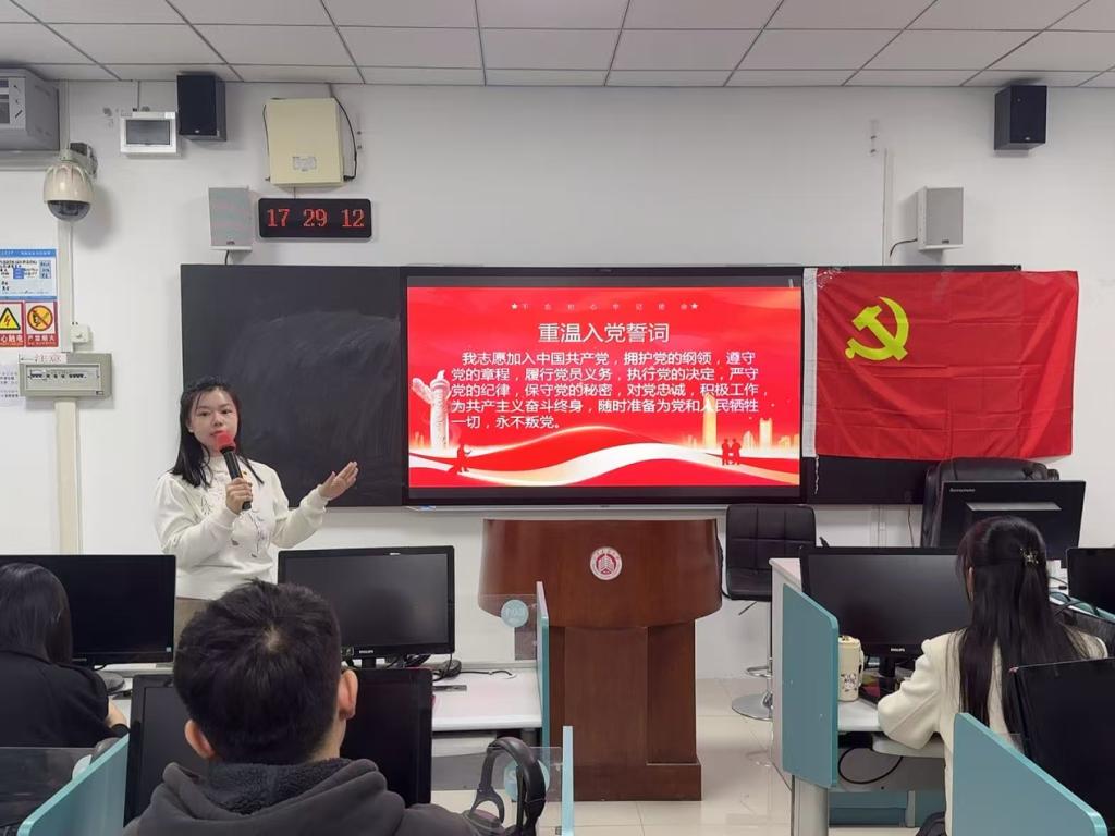指导环节结束后,王冰带领全体与会党员,面对鲜红的党旗,郑重举起右拳,重温入党誓词。这一庄严仪式,为此次主题党日活动画上了浓墨重彩的一笔,深刻提醒每一位党员,要不断精进学业、不断提升能力,更好地为人民服务,为党和国家的事业贡献智慧与力量。