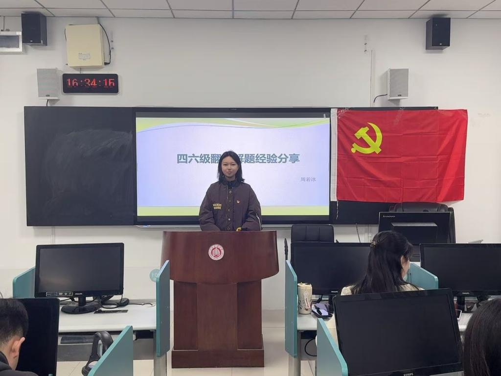 来自四个支部的学生党员和入党积极分子齐聚一堂,现场学习氛围浓厚。本次活动特别邀请了四位在四六级考试中取得优异成绩的优秀学生党员担任主讲嘉宾。在分享环节,主讲同学们围绕听力理解、阅读理解、写作与翻译四大核心模块,进行了系统而深入的技巧拆解与经验分享。他们结合自身的备考实战经历,梳理了高频考点分布规律,讲解了高效的解题策略与方法。主讲人们的讲解条理清晰、重点突出、实用性强,赢得了在场同学的阵阵掌声。