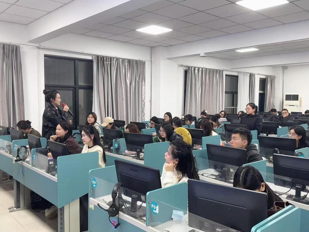 为深入贯彻落实新时代党的建设总要求,充分发挥基层党组织的战斗堡垒作用和党员的先锋模范作用,切实服务青年学生成长成才需求,11月13日,由外国语学院研究生党支部牵头,联合外国语学院本科生党支部、法学院学生第三党支部、热能工程学院学生第六党支部共同举办的“‘译’心向党,携手‘语’共”朋辈大讲堂暨联合创新主题党日活动在外文楼213教室顺利举行。活动由外国语学院研究生党支部书记谷心如主持,外国语学院学生工作办公室主任王冰、学生党员及入党积极分子参加。