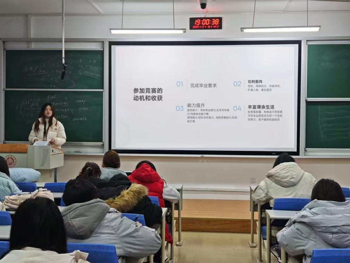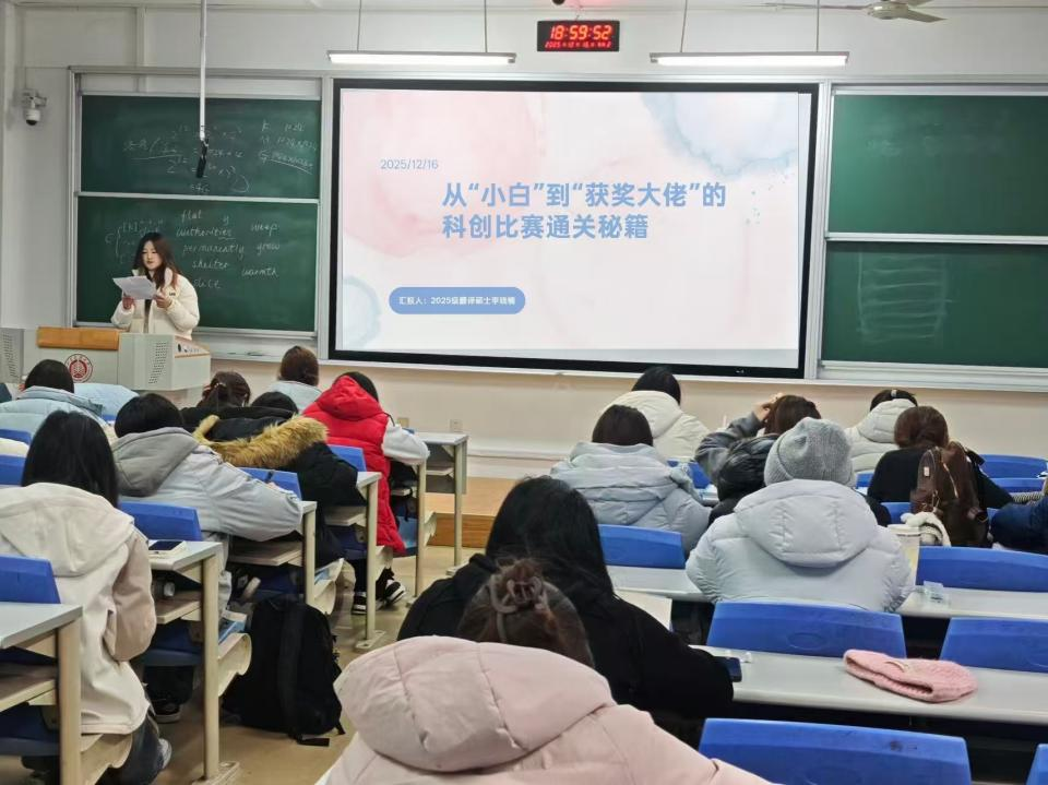 为帮助学生积累科创比赛经验、明晰参赛赛道,12月16日,外国语学院研究生朋辈导师李晓楠在逸夫楼207室开展科创竞赛经验分享讲座,2025级德语专业全体学生参加。