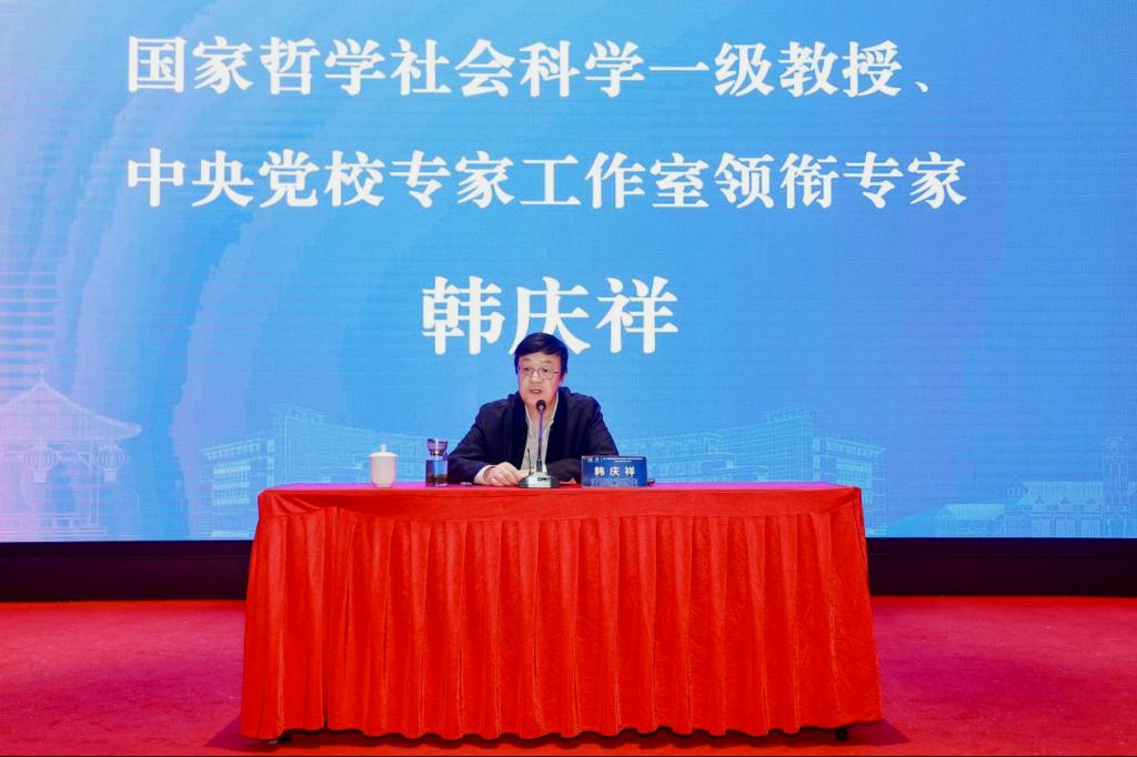 主旨报告环节,国家哲学社会科学一级教授、中央党校专家工作室领衔专家韩庆祥,教育部高等学校思想政治理论课分教学指导委员会委员、南京师范大学教授王刚,中国辩证唯物主义研究会城市哲学研究分会会长、苏州大学教授庄友刚,山东省泰山学者、中国石油大学(华东)马克思主义学院院长、教授张瑞涛,中国辩证唯物主义研究会城市哲学研究分会副会长、山东师范大学教授贾英健,国土空间生态修复山东省工程研究中心主任、山东建筑大学教授崔东旭6位专家围绕中国城市发展中的物本逻辑与人本逻辑、党的二十届四中全会精神融入思政课教育教学、现代化人民城市的历史唯物主义叙事、城市规划百年回顾与人民城市建设的思考等主题作深入阐述。
