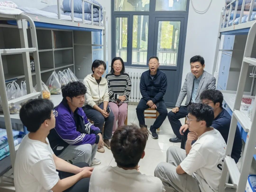 走访过程中,学院领导与同学们围坐在一起,亲切地拉家常、话团圆,气氛温馨融洽。李瑞学书记关切地询问新生们入学后在学业进展、日常生活以及环境适应等方面是否存在具体困难,并耐心倾听同学们的分享与感受。他勉励新生,大学时光宝贵而短暂,希望大家尽快完成角色转换,适应新的学习和生活节奏,珍惜韶华,勤奋学习,夯实专业基础,提升综合素养,以优异的成绩回报家庭的养育之恩和社会的殷切期望。领导们平易近人的态度和语重心长的叮嘱,让在场新生倍感温暖与鼓舞。