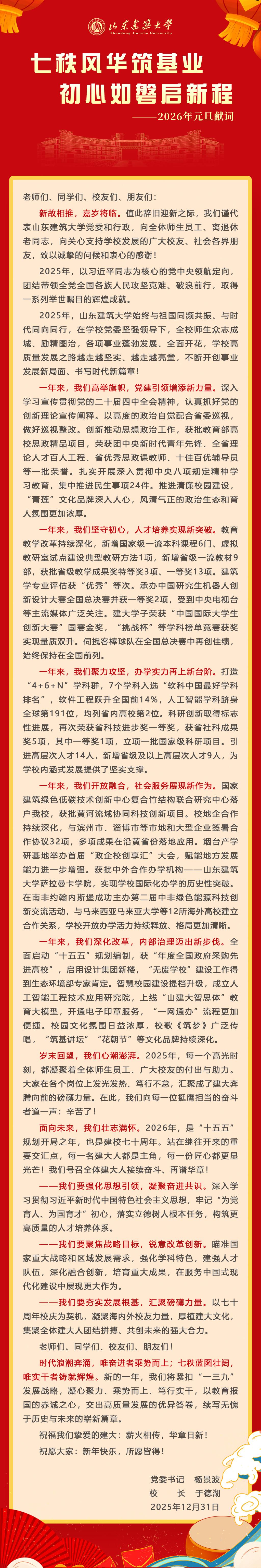 七秩风华筑基业,初心如磐启新程----山东建筑大学2026年元旦献词