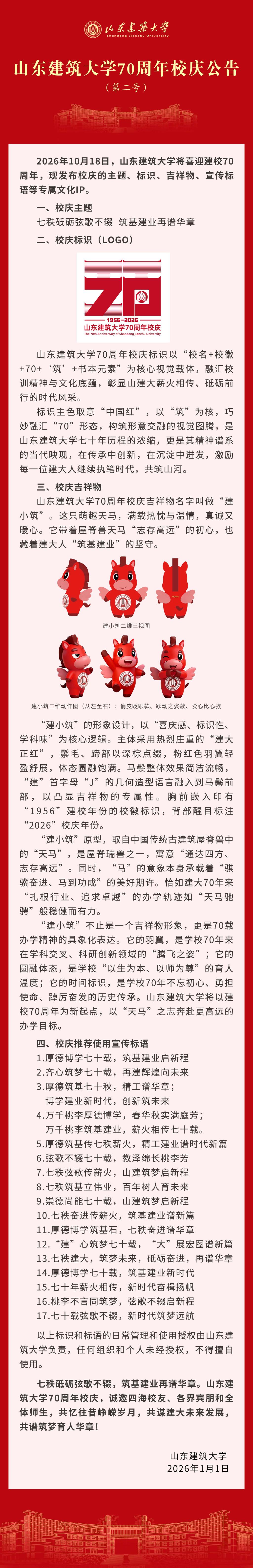 山东建筑大学70周年校庆公告(第二号)