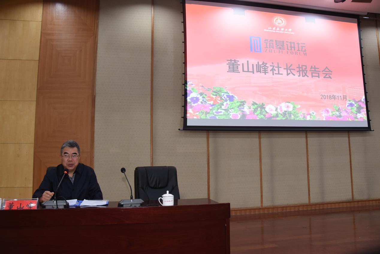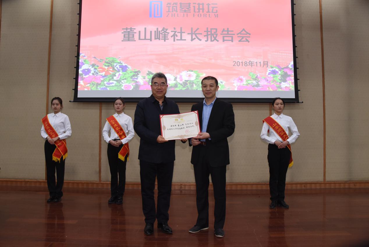 11月24日上午,由学校党委宣传部主办、理学院党委承办的筑基讲坛——董山峰报告会在筑基会堂举行。《光明日报》高级记者、《博览群书》杂志社社长兼主编、全国优秀新闻工作者董山峰做客本次讲坛,为我校师生作了题为“如何讲好中国故事”的专题报告。校党委书记陈国前、副校长杨赟出席报告会,杨赟代表学校向董山峰颁发了客座教授聘书。相关职能部门负责人、思政课教师、全体学生工作干部及部分学生代表参加报告会。报告会由杨赟主持。