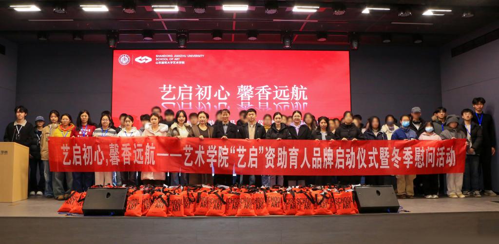 寒冬送暖,美育润心。1月16日,山东建筑大学艺术学院在美剧场举办“艺启初心·馨香远航——“艺启”资助育人品牌启动仪式暨冬季慰问活动,为288名受助学子送上冬季暖心大礼包,以物质帮扶与精神滋养并重的方式,开启学院精准资助转型的全新篇章。学院党委副书记李琳琳、辅导员及受助学生代表参加活动。