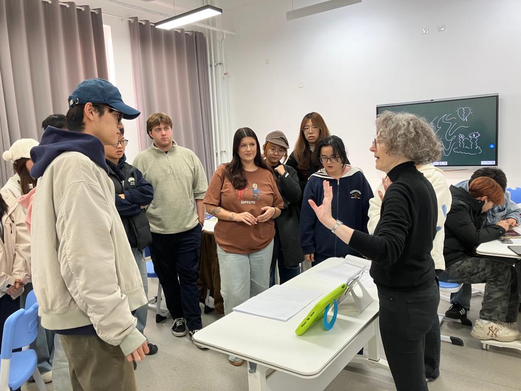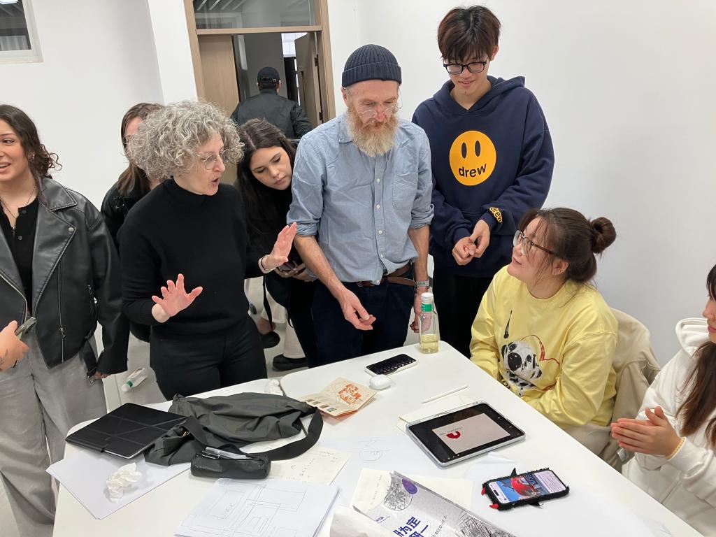 工作坊首日在轻松友好的氛围中拉开序幕。Matt与Lara教授首先向与会师生简要介绍了利兹贝克特大学及其相关课程体系,增进了中方学生对英方教学理念的了解。为促进深度互动,全体参与者被分为四个大组,每组约20名中方学生,并配备两名英方学生担任助教。面对文化背景与交流习惯的差异,工作坊精心设计了破冰环节,两国学生通过展示和介绍各自的设计作品,迅速拉近了距离,建立起初步的友谊与默契。随后,Matt教授详细阐述了本次工作坊的核心任务与目标。