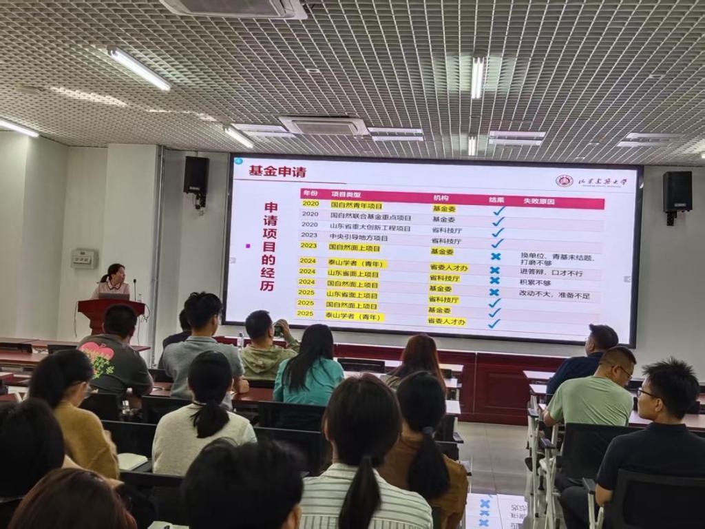 随后,曹秀凤副教授以《“磨”出来的标书:基金申请中的精雕细琢》为题作专题分享。她结合大量真实案例,生动拆解了基金申请过程中常见的痛点与难点,并从逻辑构建、内容打磨、细节把控等维度,体系化提出了切实可行的解决策略,为师生的基金申报工作提供了实操性指导。